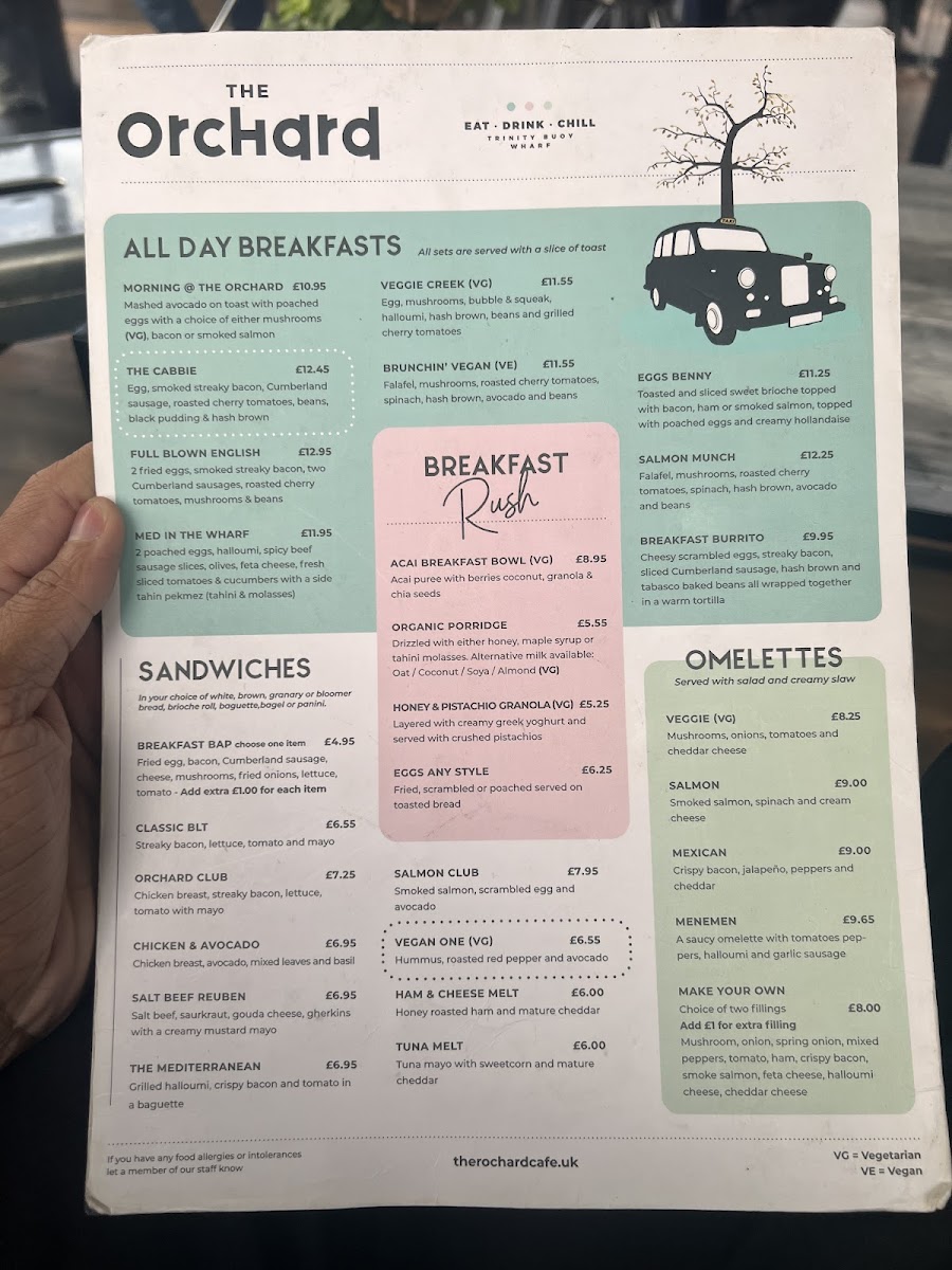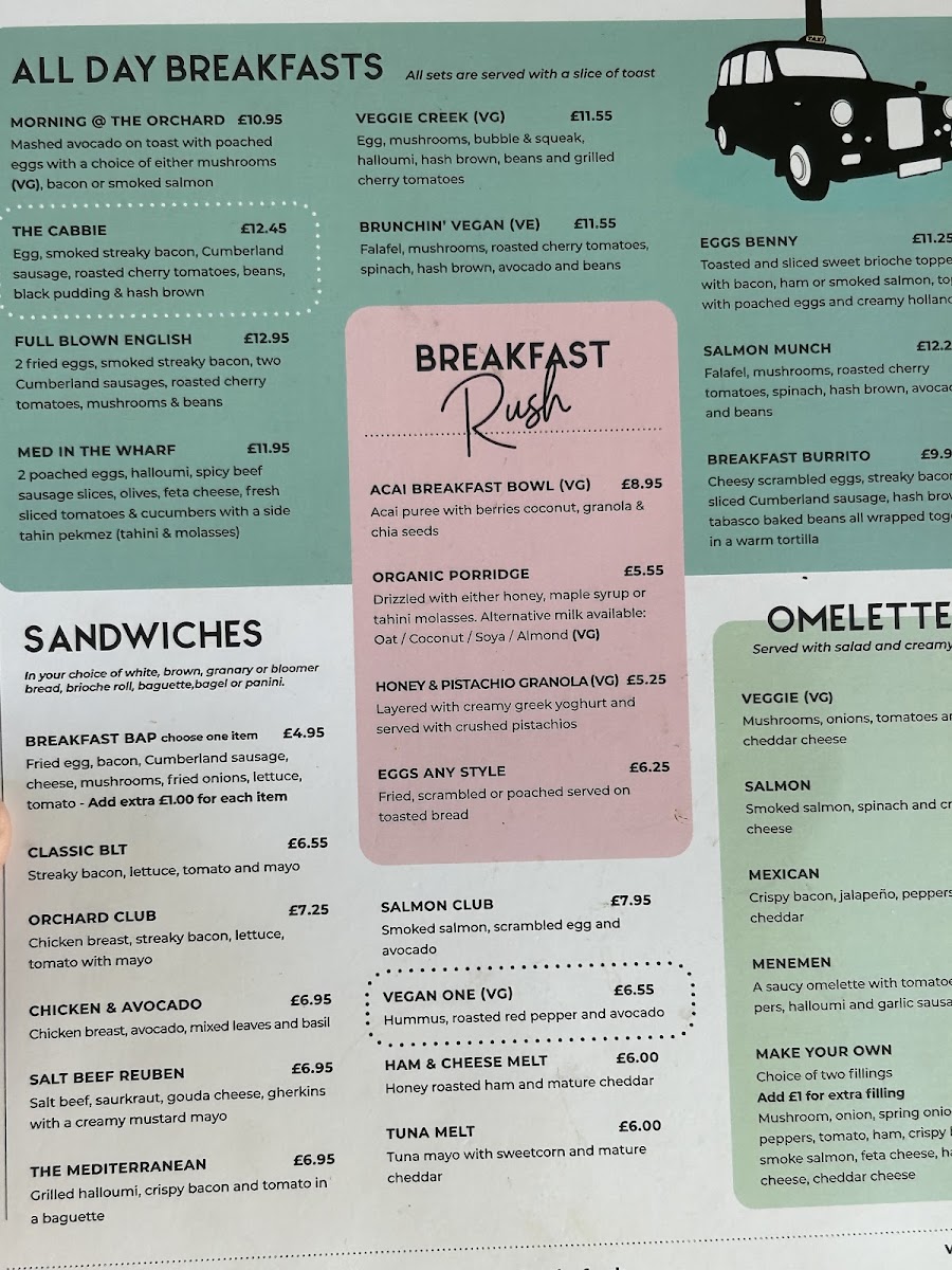 Don't miss out on add-ons like luxurious Feta Cheese and Black Pudding, or indulge in sides of Curly Fries or crispy Regular Fries. With friendly staff and a bright, airy setting, The Orchard Cafe feels like a home away from home—so come savor its culinary delights!